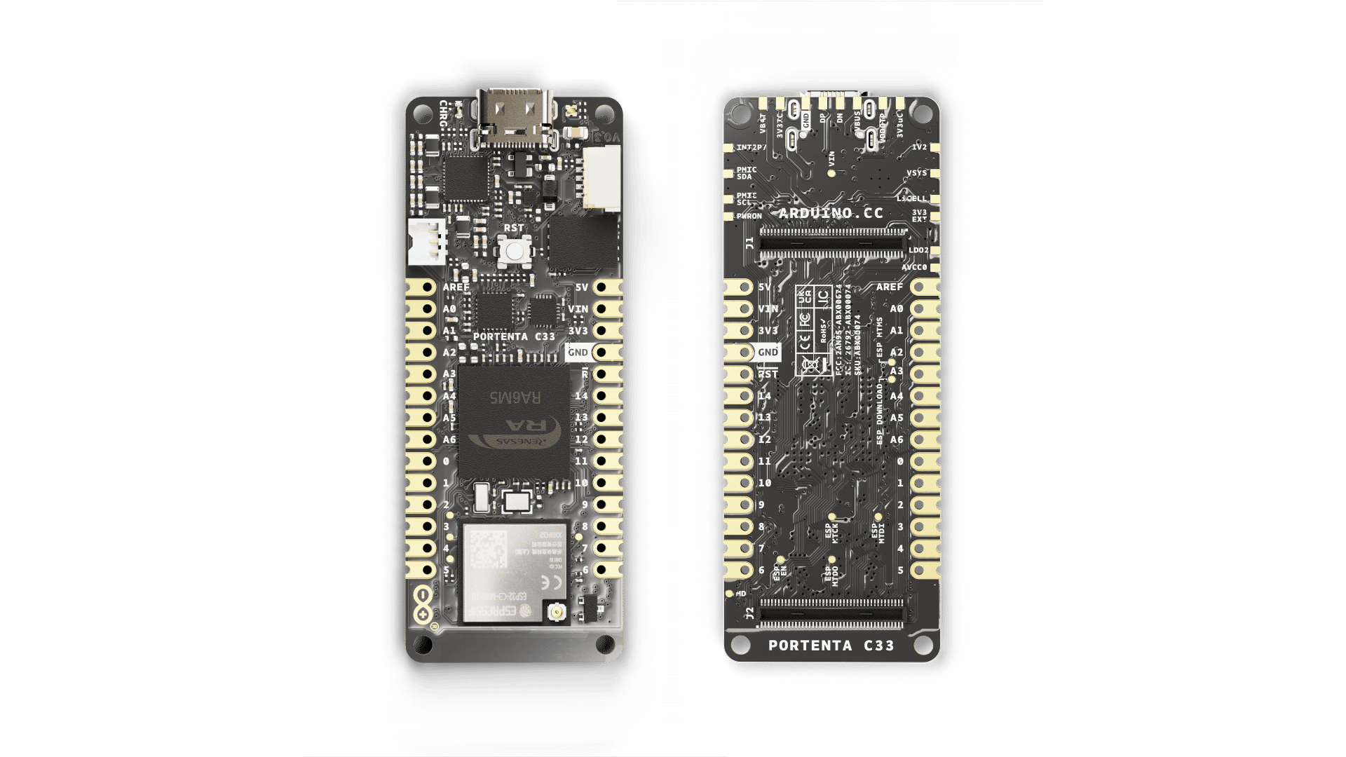 Finally, Portenta C33 provides Portenta and MKR developers with a plug-and-play IoT prototyping solution, because it supports high-level languages like MicroPyton and integrates not only Wi-Fi® and Bluetooth® Low Energy connectivity but also a wide variety of peripheral interfaces, including CAN, SAI, SPI and I2C.