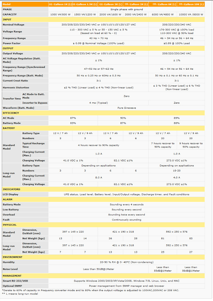 GI-Galleon 1KVA/1.5KVA/2KVA/3KVA/5KVA/6KVA/10KVA Online UPS